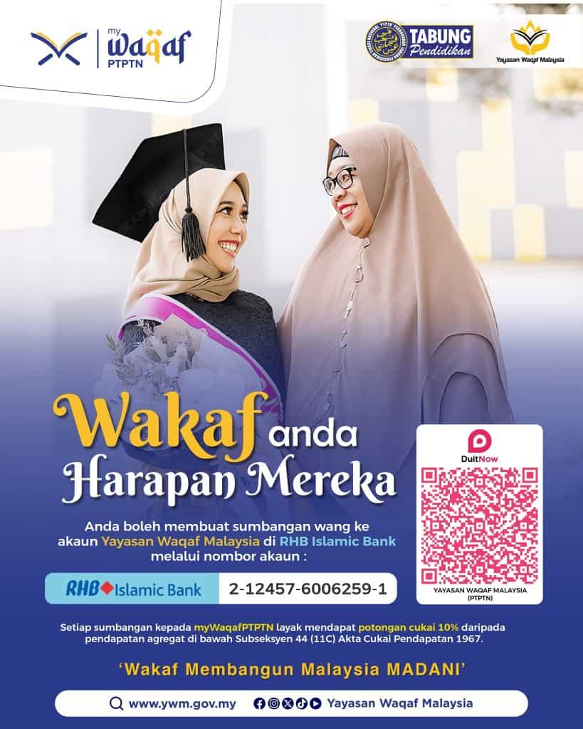 Produk/ instrumen wakaf tunai ini disediakan melalui kerjasama strategik antara Perbadanan Tabung Pendidikan Tinggi Nasional (PTPTN) dengan Yayasan Waqaf Malaysia (YWM) yang telah dimeterai pada 22 Februari 2024.